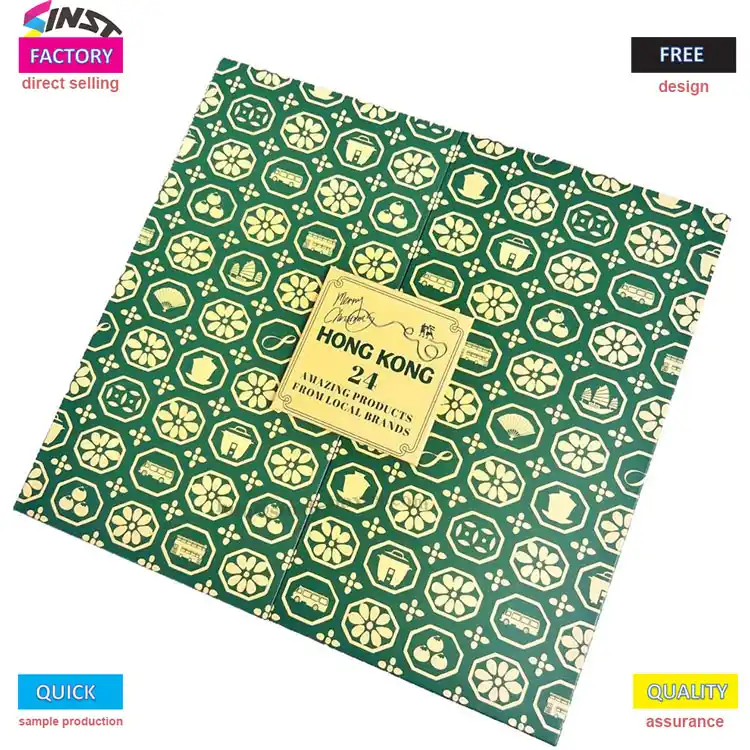 Denne adventskalendergaveboksen har et ferienedtellingsdesign med 24 skuffer og 1 spesialrom, og gjenoppretter perfekt den seremonielle følelsen av juleutpakking. Den er egnet for ulike produkter som sjokolade, skjønnhetsprøver og små tilbehør; Den dypgrønne bakgrunnen sammen med gullfolietrykk, supplert med byens skyline og stjernemønstre, utstråler ikke bare en eksklusiv tekstur, men utstråler også en festlig atmosfære, noe som gjør hyllen ekstremt attraktiv.