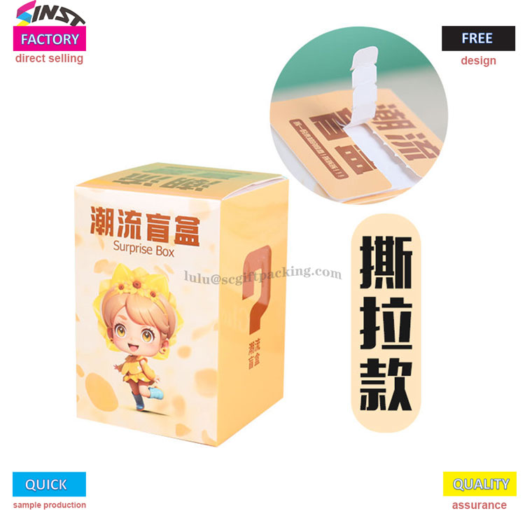 I den stadig utviklende verdenen av samleobjekter har en ny trend feid over hele leketøysindustrien. I motsetning til den komplekse emballasjen til tradisjonelle blinde bokser,Denne kortboksenSerien vedtar en praktisk utforming av "tåre og åpen". Den ytre boksen er trykt med et Q-versjon tegneseriebilde, og det søte objektet som er gjemt inni, kan avsløres i rivningsøyeblikket, noe som gjør unboxing-prosessen full av avslappet seremoni, som er elsket av unge av Gud. Disse sjarmerende leketøysoverraskelsene kombinerer spenningen ved å unboxing med spenningen ved å oppdage lekene inni, noe som får folk til å elske dem enormt;