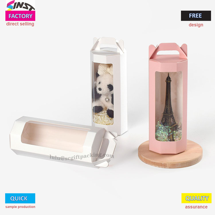Denne luksuriøse lysrosa vindusgaveboksen er perfekt for å holde dukker og blomster. Trenden med å sende blomster i sjarmerende bokser har betatt både givere og mottakere, noe som gir et snev av raffinement til tradisjonelle blomsteroppsatser. Blomstvindusbokser kommer i en rekke former, størrelser og design, og blander blomster med den utsøkte gaveesten. I motsetning til den typiske lukkedeBlomsterfolding av vindusgaveboks, har disse et gjennomsiktig vindu innebygd foran, og dekker to tredjedeler av boksenes overflate. Gjennom cellofanen kan omrissene av blomstene inne sees tydelig - dette er "blomstervinduets gaveeske" som rolig har blitt populær i høst og vinter.