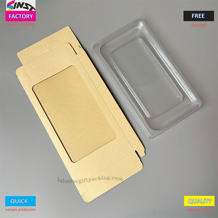 Denne telefonvesenemballasjeboksen har et "gjennomsiktig vindu+flere fargealternativer" -design - brune, hvite og svarte emballasjebokser alle har gjennomsiktige vinduer, slik at du kan se tegneseriemønstre inni uten å åpne boksen. Emballasjeboksen har hengende hull og kan sendes flatt uten trykkskader. Det er iøynefallende når det er plassert i hyller, skap og vinduer. Det er både en telefonkasse og et "dekorativt element", som kombinerer praktisk og estetikk.