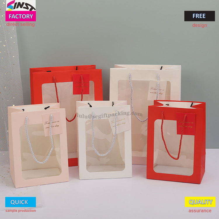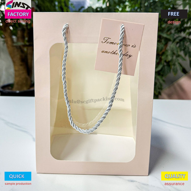 Er du redd for å åpne blinde bokser når du gir gaver? Denne håndvesken kommer med en gjennomsiktig vindusdesign, som gjør at gaveoversikten kan tydelig presenteres og gir behagelig grep, noe som gjør det til et visuelt høydepunkt; Det gjennomsiktige PVC -vindusdesignet kan vise frem deilige bakekreasjoner og gaver som kaker, informasjonskapsler, makroner, etc. Bukettvinduet Åpningsveske kan også vise frem de vakre produktene dine til familie og venner med tilpassede kort. Håndskrevne velsignelser fyller øyeblikkelig atmosfæren med eksklusiv seremoni. Gaver til bursdager, høytider og merkedager kan gis med både utseende og intensjon. Selvfølgelig er Flower Tote -posen også et godt valg for daglig lagring.